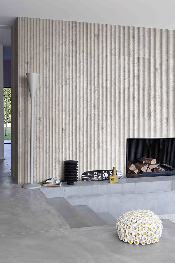 Transform your walls with the Mars Panel™ Collection featuring large format 6” x 18”, Inward and Outward fluted marble.
