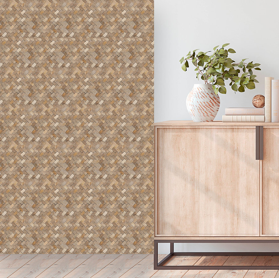 The Walnut 3D Collection creates a luxurious feel to your decor. With a textured 3-Dimensional multi-level herringbone pattern and a warm honed finish, designed for wall installation, these mesh-mounted mosaic tiles add architectural depth, dimension, and reflective drama to any space.